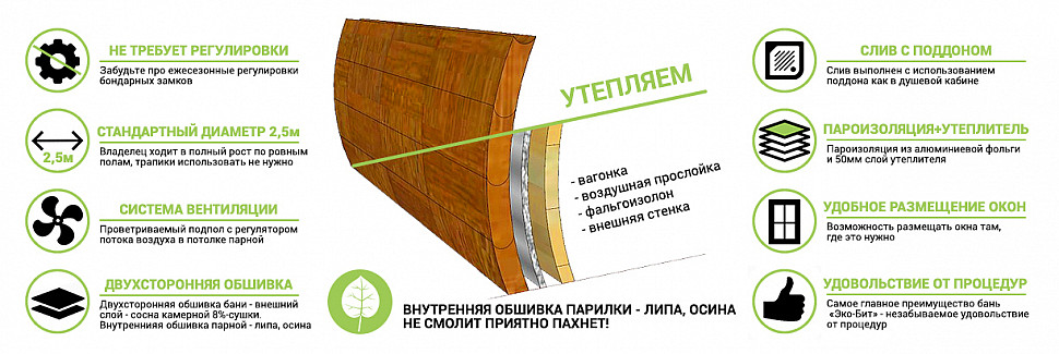 4 слой – отделочный: Вагонка липа, осина, ольха, кедр дополнительная услуга.