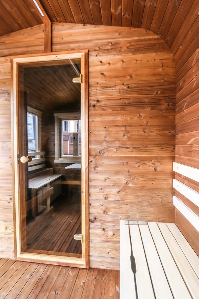 По всему периметру парной (потолок, стены) прокладывается алюминиевая фольга. Подшивается сухой липовой вагонкой