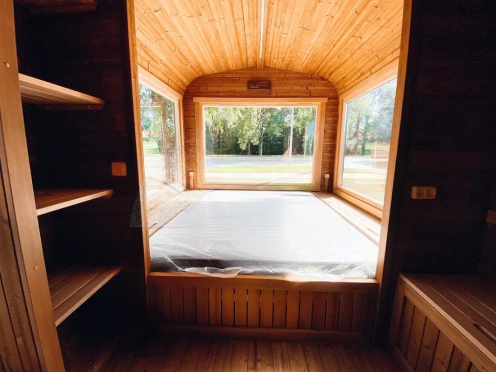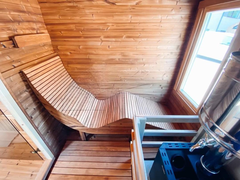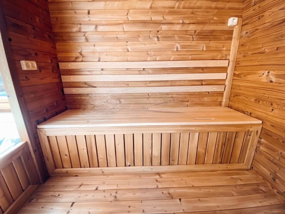Многофункциональный садовый домик квадро серии функо 65 длиной 6 метров сочетает в себе баню и гостевой домик. Конструкция включает три помещения: парное отделение с электрокаменкой Harvia Trendi KIP90T, моечную зону с душевой кабиной и просторную комнату отдыха с унитазом и раковиной. Домик изготовлен из сосны или ели камерной сушки с соединением лунный паз 42 мм. Крыша из гибкой черепицы Shinglas доступна в трех цветах. Оконные блоки со стеклопакетами обеспечивают естественное освещение. Американское масло Varathane и электрическое освещение LINDNER создают комфортную атмосферу. Идеальное решение для загородного отдыха с банными процедурами.